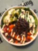 This bowl is stuffed with fresh Ahi tuna, seaweed salad, lettuce, masago, green onions, blue corn chips, wasabi mayo, sesame seeds & sesame oil 👌